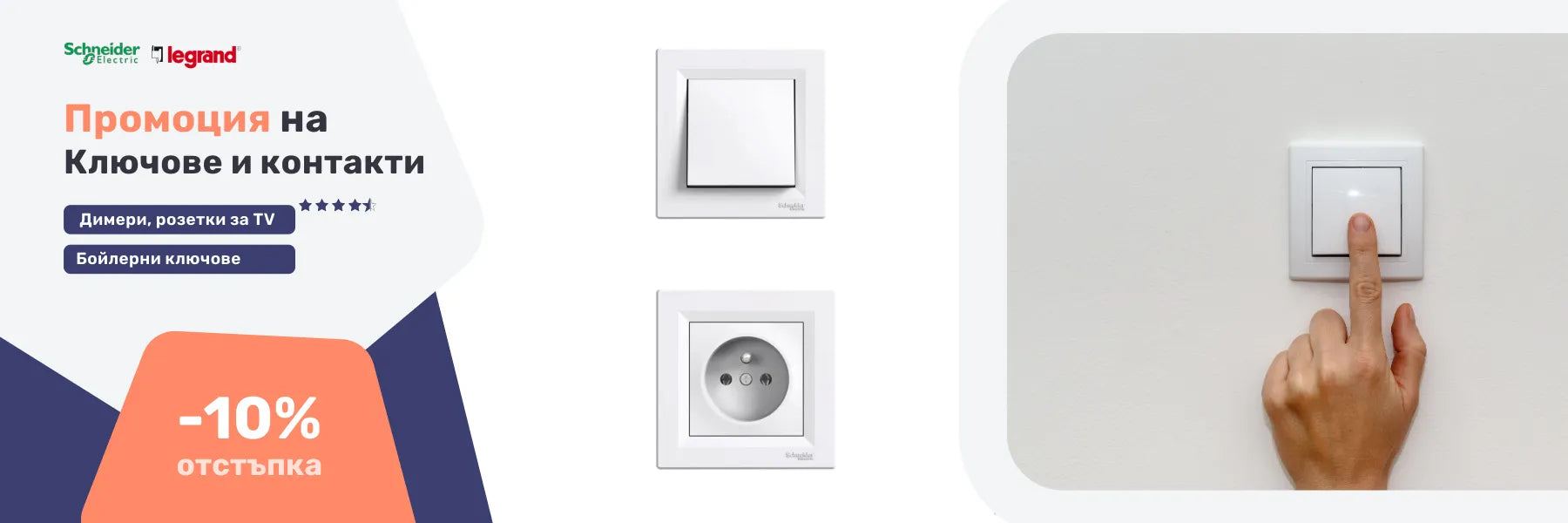 Купи димери, единични, двойни, серийни, дивиаторни, бойлерни ключове и табла, кръстати, розетки за интернет и ТВ и други