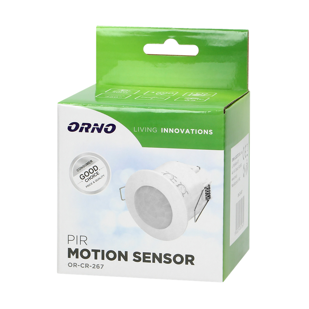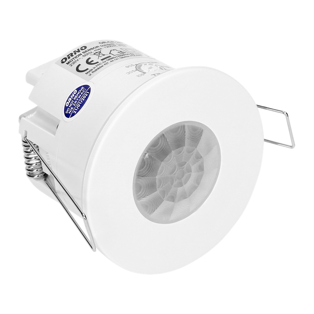 Датчик за движение PIR , за вграждане в таван , 360° , обхват D 6 m @ h = 2.5 m , IP 65 , цвят Бял ORNO