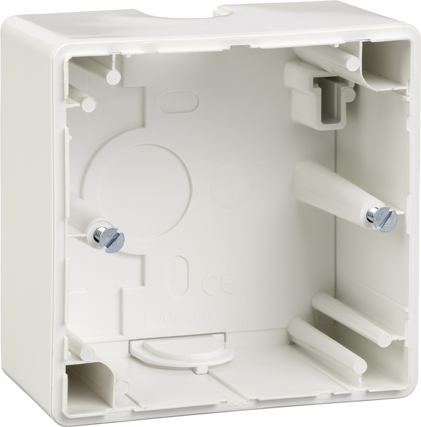 Единичната конзола е предназначена за открит монтаж на електрически механизми от серията System M на Merten SE. Тя осигурява стабилна и надеждна инсталация, като същевременно поддържа елегантен и изчистен дизайн.