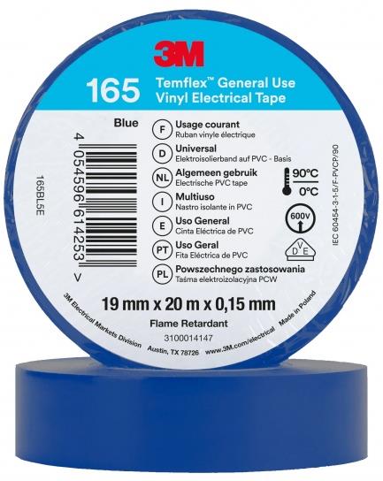 Изолационна лента Temflex 165 цвят СИН 0.15 мм х 19 мм , дължина 20 м 3 M