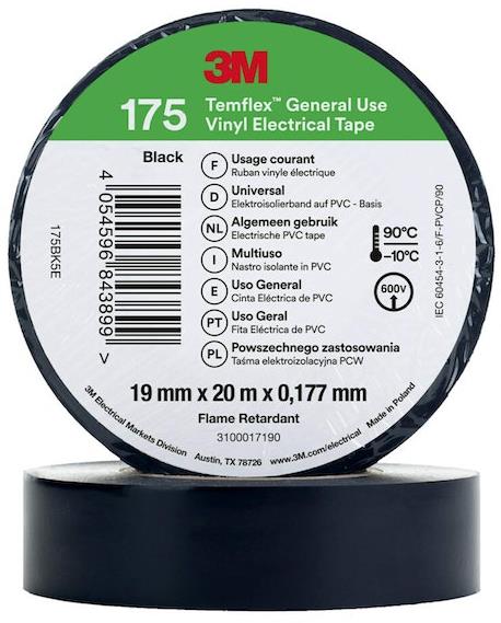 Temflex 175 е PVC лента с дебелина 0.18мм, която има висока диелектрична якост (40 kV/mm). Лентата е устойчива на огън, абразия, влага, алкали, киселини и слънчева светлина. Степен на разтягане: 200%. Сила на залепване към стомана: 2.0N / 10mm. За вътрешни и външни приложения при температури от -10°C до +90°C.