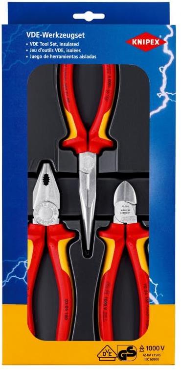 Комплектът с 3 бр. клещи Knipex е идеален за професионалисти и аматьори, които се нуждаят от качествени инструменти за електрически и механични операции.