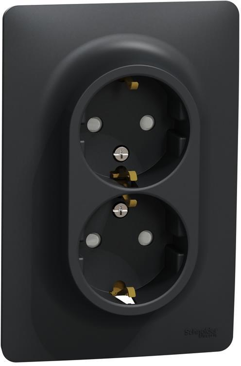Контакт шуко ДВОЕН моноблок цвят Антрацит Unica SE