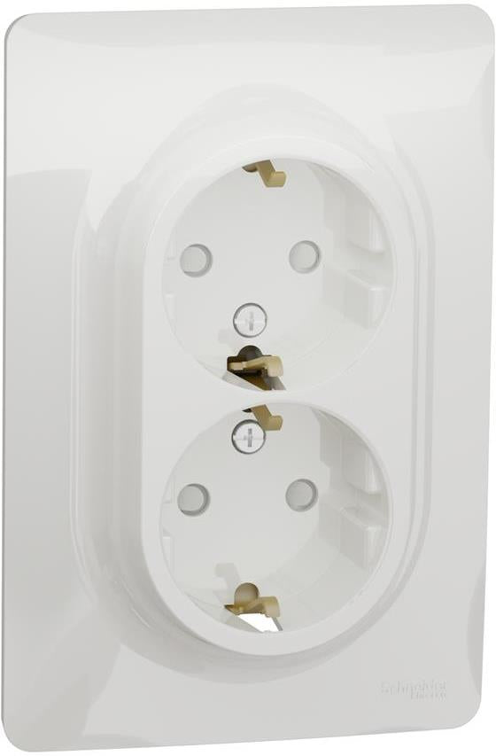Контакт Шуко Двоен Моноблок, цвят Бял от серия Unica SE е предназначен за осигуряване на безопасно и удобно захранване на електрически уреди. Този контакт е с два изхода, което го прави идеален за използване в помещения, където е необходимо свързване на повече устройства към един изход.
