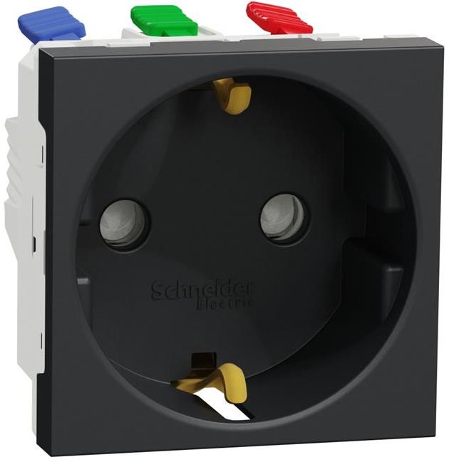 Контактът шуко с детска защита от серията Unica на Schneider Electric е двумодулен механизъм в цвят антрацит, предназначен за вграждане. Той осигурява безопасност и естетика във вашия дом или офис.