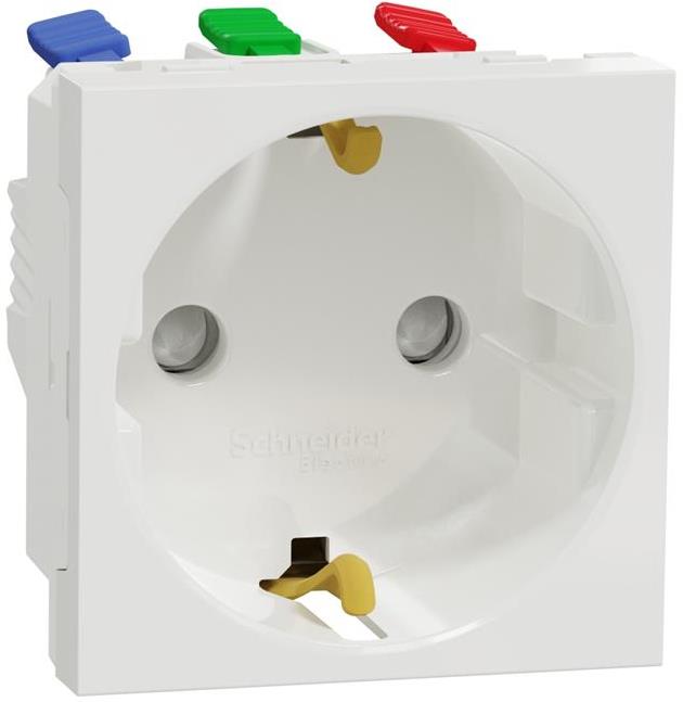 Контакт шуко с детска защита, автоматичен, 2 модулен, в бял цвят от серия Unica SE е предназначен за безопасно и надеждно електрозахранване в дома, офиса или други помещения. Вградената детска защита предотвратява случайно поставяне на предмети в контакта, като осигурява допълнителна безопасност за деца.