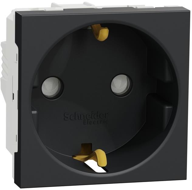 Контакт Шуко с детска защита винт 2 мод. в цвят Антрацит от серията Unica SE е устройство, предназначено за надеждно и безопасно свързване в електрическите инсталации. Ето основните характеристики: