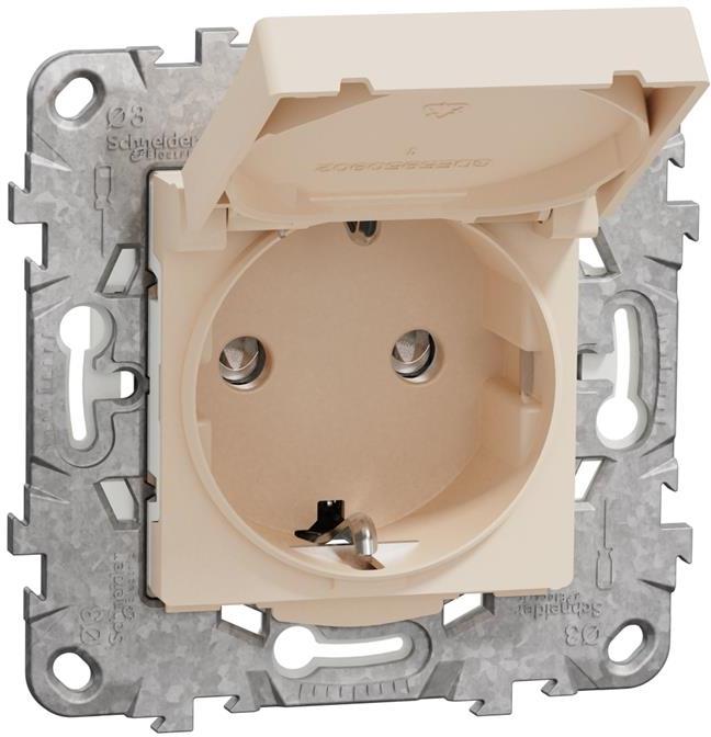 Контакт Шуко с капак IP44 с носеща рамка, 2 модула, цвят Крем, Unica SE е висококачествено и устойчиво решение за електрически инсталации, предназначено за употреба в среди с висока влажност или запрашеност. Този контакт е идеален за бани, гаражи, балкони, кухни и други помещения, където е необходима защита от вода и прах.