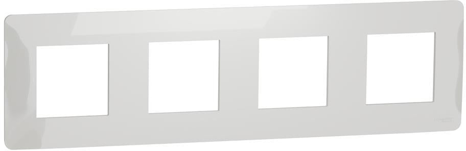 Лицевата рамка 4x в цвят Бял от серията Unica Studio SE на Schneider Electric е предназначена за инсталиране на четири модула, придавайки елегантен и съвременен вид на всяко помещение.