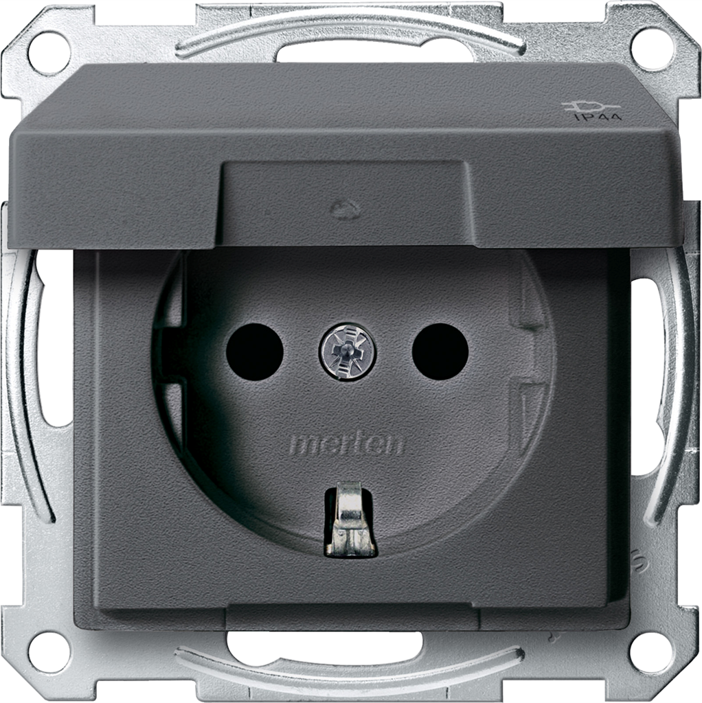 Механизъм контакт шуко с лицев панел IP44 цвят Антрацит System M Merten SE