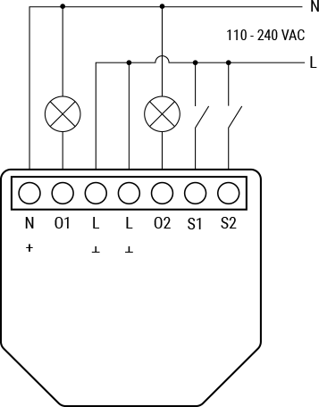 Два канала: Модулът може да управлява две отделни устройства или вериги (осветление, щори и др.), като ви дава пълен контрол върху всяко устройство.