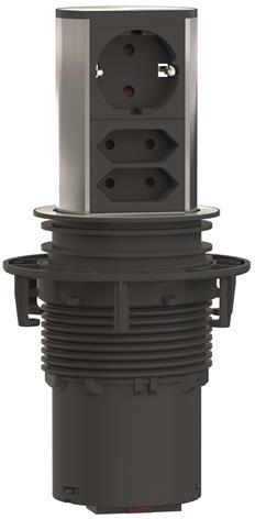 Модул ELEVATOR с 1 х Шуко и 2x Евро , с кабел 2 м , цвят Инокс , Bachmann