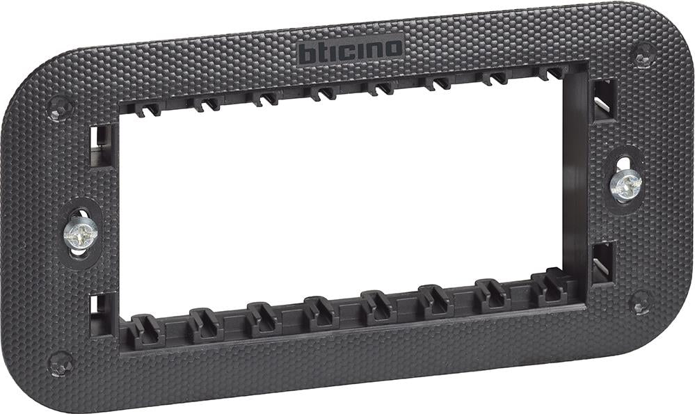 Носеща рамка за 4 модула – предназначена за монтаж на до 4 електрически модула от серията Living Now на Bticino. Тя предлага интегрирано решение за съвременни инсталации, като дава възможност за комбиниране на различни електрически устройства в една рамка.