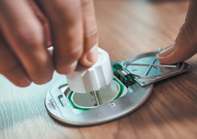 Захранване на устройства: Може да захранва различни устройства като компютри, осветление, машини и други електрически уреди, които изискват подово разположение.