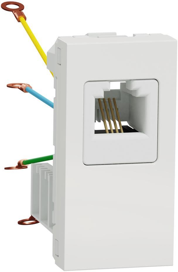 Розетката телефон RJ12, 1 модул, цвят бял, Unica SE на Schneider Electric е предназначена за свързване на телефонни линии в жилищни и търговски обекти.