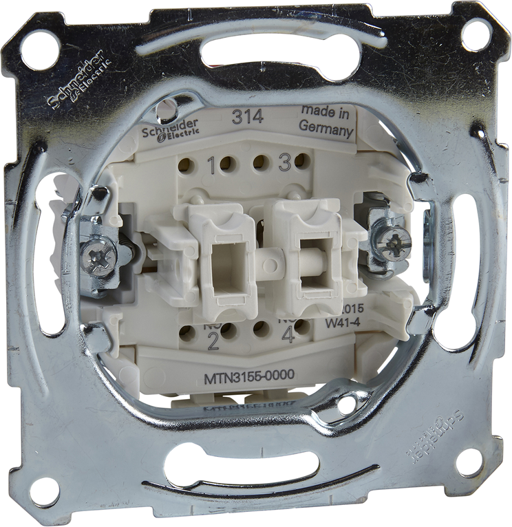 Сериен бутон механизъм от серията Merten SE на Schneider Electric е предназначен за управление на осветителни вериги с възможност за управление от две различни места.