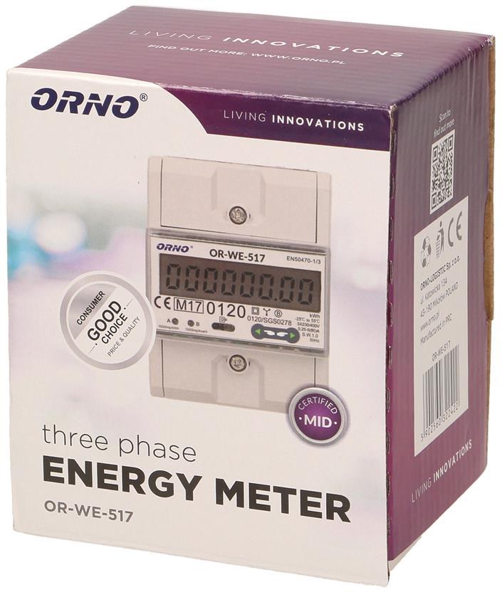 Трифазен електромер за ДИРЕКТНО мерене на ел. енергия, Modbus, до 4 тарифи, за DIN монтаж 4.5 мод, 80 A , MID ORNO