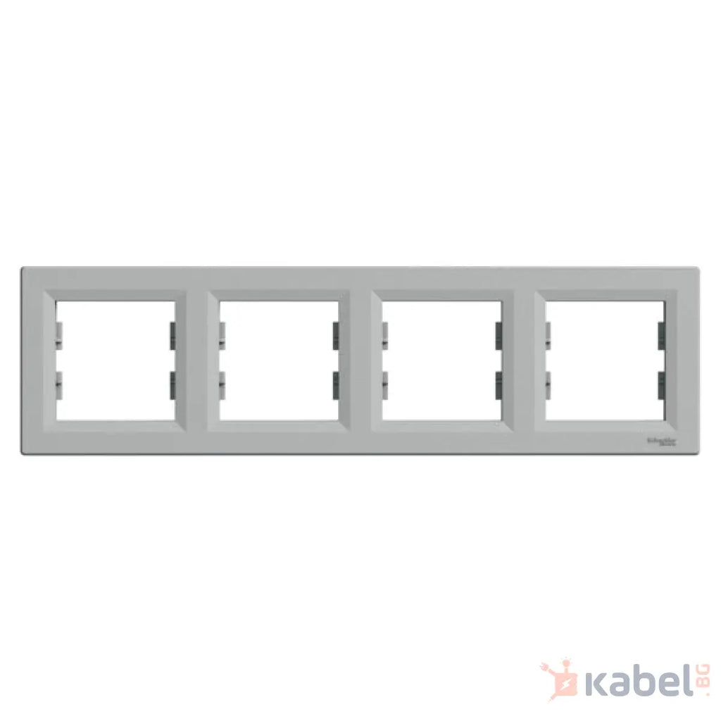 Четворна декоративна рамка Асфора Шнайдер Сив алуминий Сив IP20 Asfora за 4 контакта/ ключа