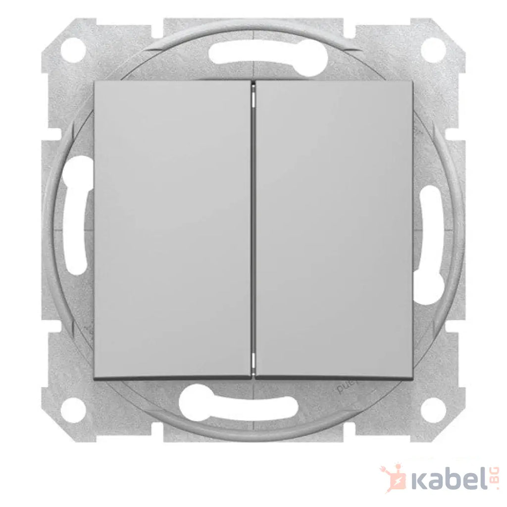 Двоен ел. ключ Седнa Шнайдер Сив алуминий Сив схема СХ 5 10A Скрит - вграден монтаж IP20 Sedna сериен SDN0300160
