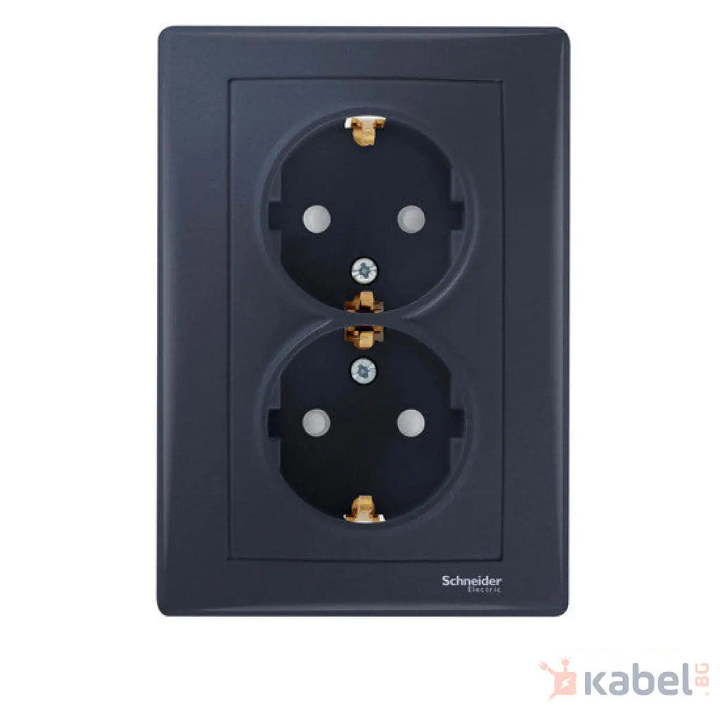 Двоен контакт в една конзола Седнa Шнайдер Сив графит Сив 16А Шуко Скрит - вграден монтаж IP20 Sedna със защита за деца SDN3000470