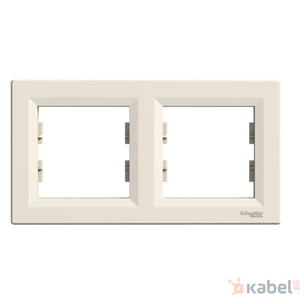 Двойна декоративна рамка Асфора Шнайдер Крем Бежов IP20 Asfora за 2 ключа/ контакта