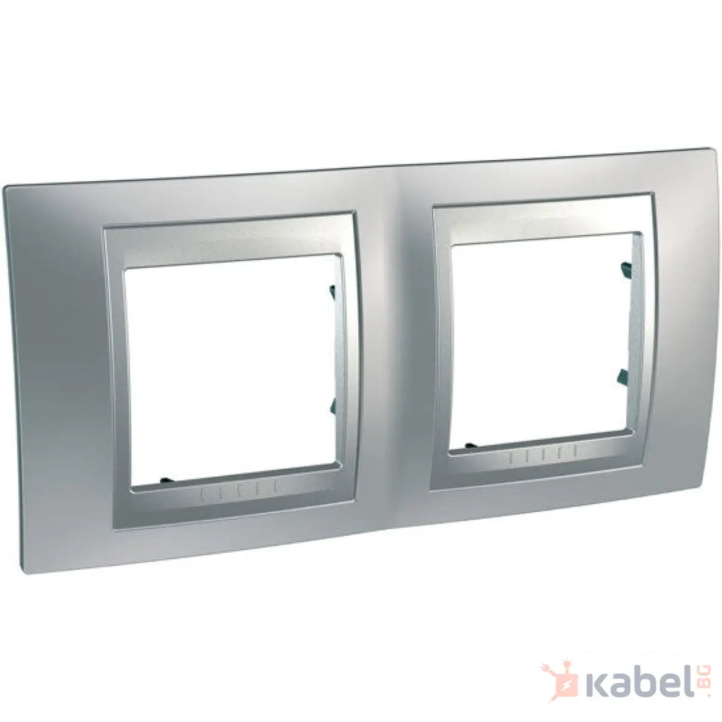 Двойна декоративна рамка Уникa Шнайдер Хром/алуминий Сив С щипки IP20 Unica за 2 ключа/ контакта MGU66.004.038