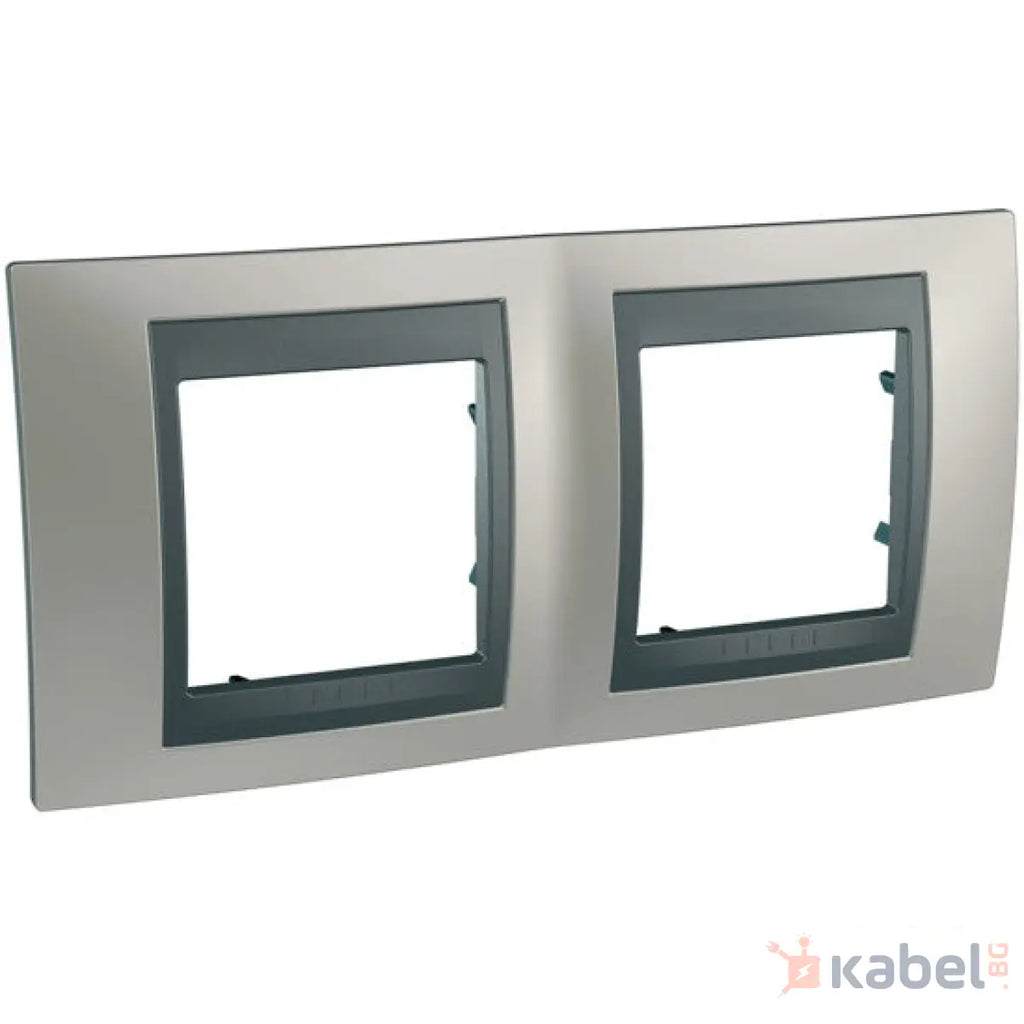 Двойна декоративна рамка Уникa Шнайдер Никел мат/Графит Сив С щипки IP20 Unica за 2 ключа/ контакта MGU66.004.239