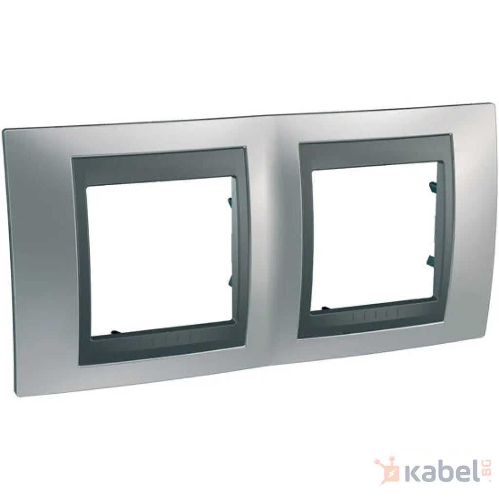 Двойна декоративна рамка Уникa Шнайдер Хром/графит Сив С щипки IP20 Unica за 2 ключа/ контакта MGU66.004.238