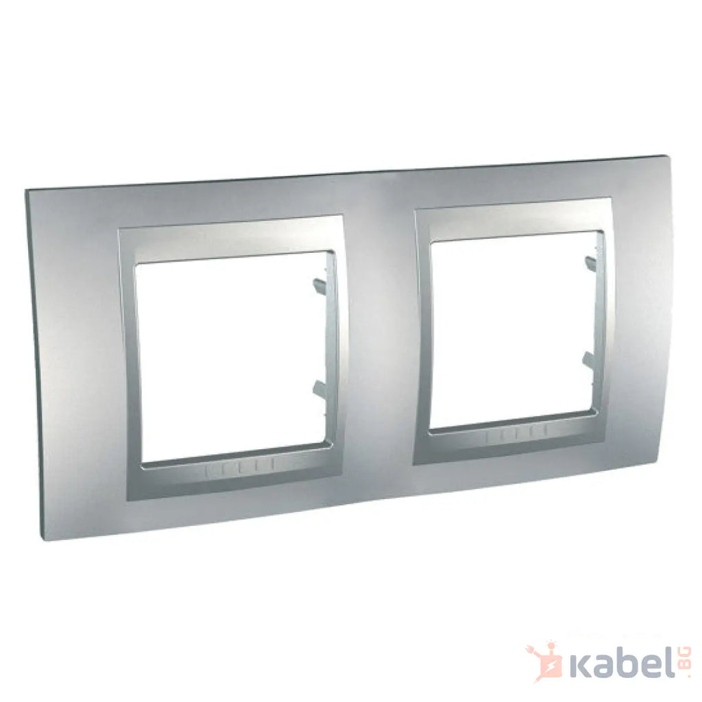 Двойна декоративна рамка Уникa Шнайдер Сив алуминий Сив С щипки IP20 Unica за 2 ключа/ контакта MGU6.004.30