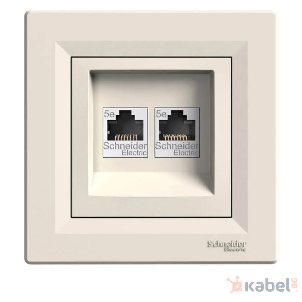 Двойна розетка за интернет RJ45 Асфора Шнайдер Крем Бежов Скрит - вграден монтаж IP20 Asfora за два лан кабела, EPH4400123