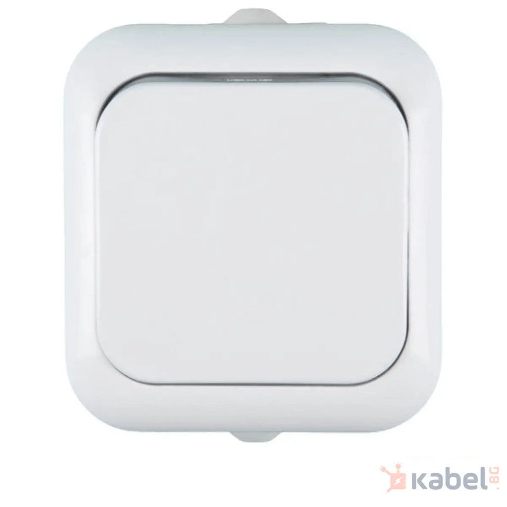 Единичен ел. ключ Бял схема СХ 1 Външен - открит монтаж IP44 за осветление