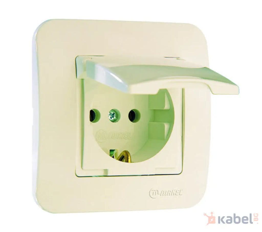 Единичен контакт за плот, баня с капак Крем Бежов с капак Скрит - вграден монтаж IP20 влагозащитен