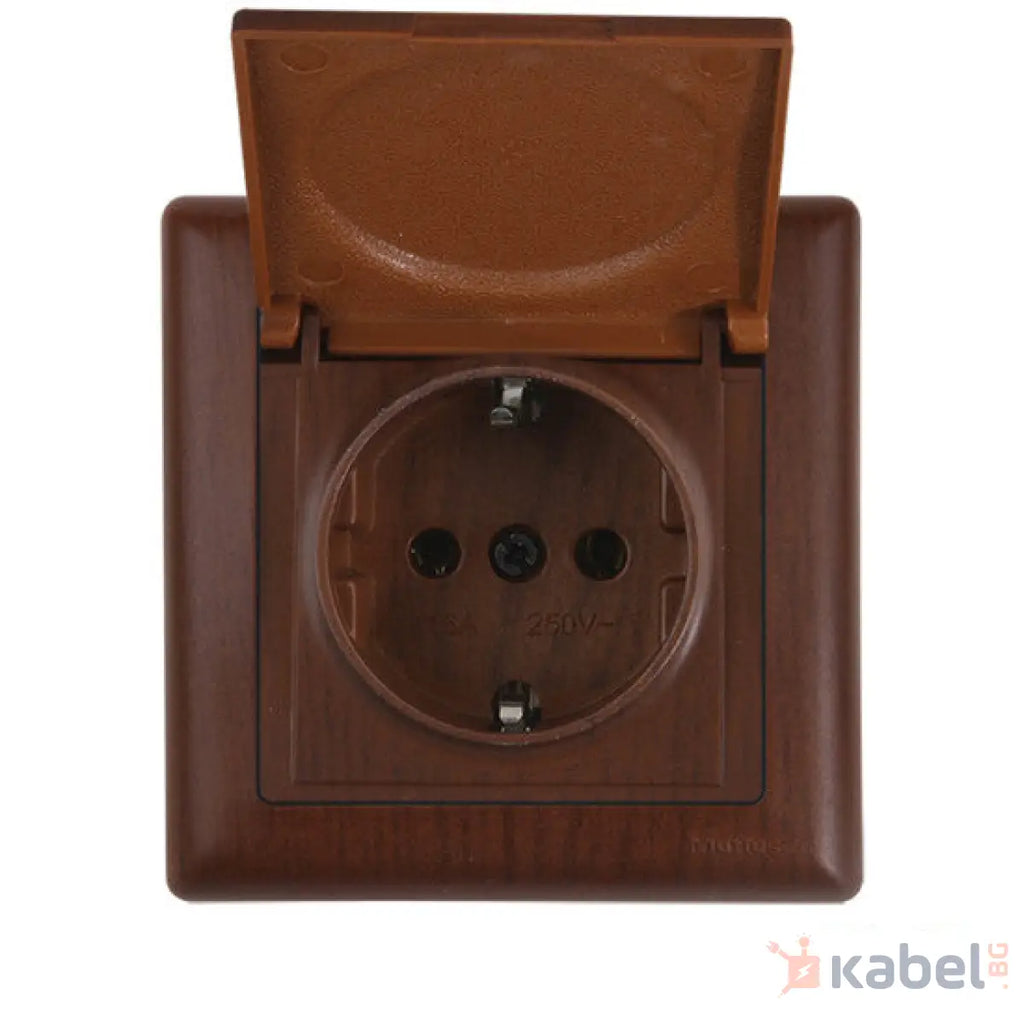 Единичен контакт за плот, баня с капак Орех Кафяв с капак Скрит - вграден монтаж IP20 влагозащитен ДАРИА, MUTLUSAN 171965