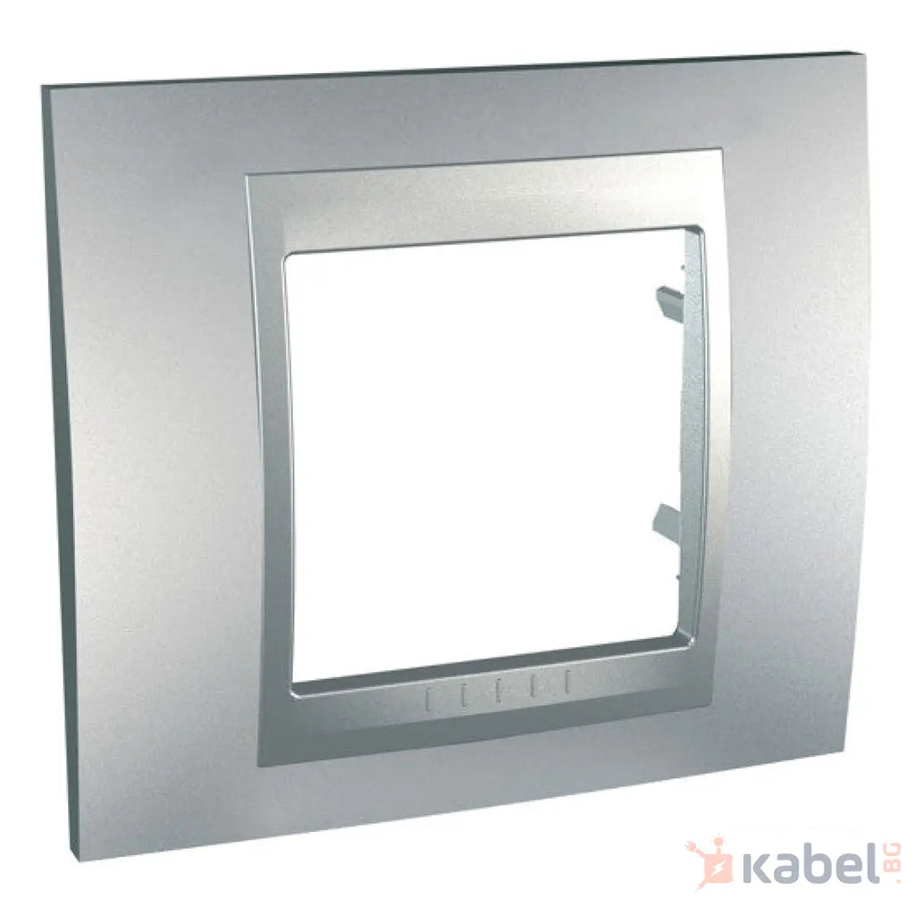 Единична декоративна рамка Уникa Шнайдер Сив алуминий Сив С щипки IP20 Unica 1 ключ / контакт MGU6.002.30