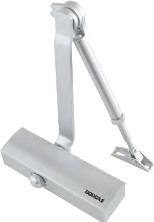 EN Автомат за пожарни и аврийни врати 45-65kg с плъзгащо рамо. Подходящ за лява/дясна врата. Функция за задържане в отворено състояние. За врати с широчина до 950mm. Регулиране ниво и скорост на затваряне. Преминал тест от 500 000 работни цикъла. Алуминиев корпус, Стоманено рамо. Работна температура: -20?~45?C. Цвят: Сив. Сертификати: EN 1634; EN 1154.