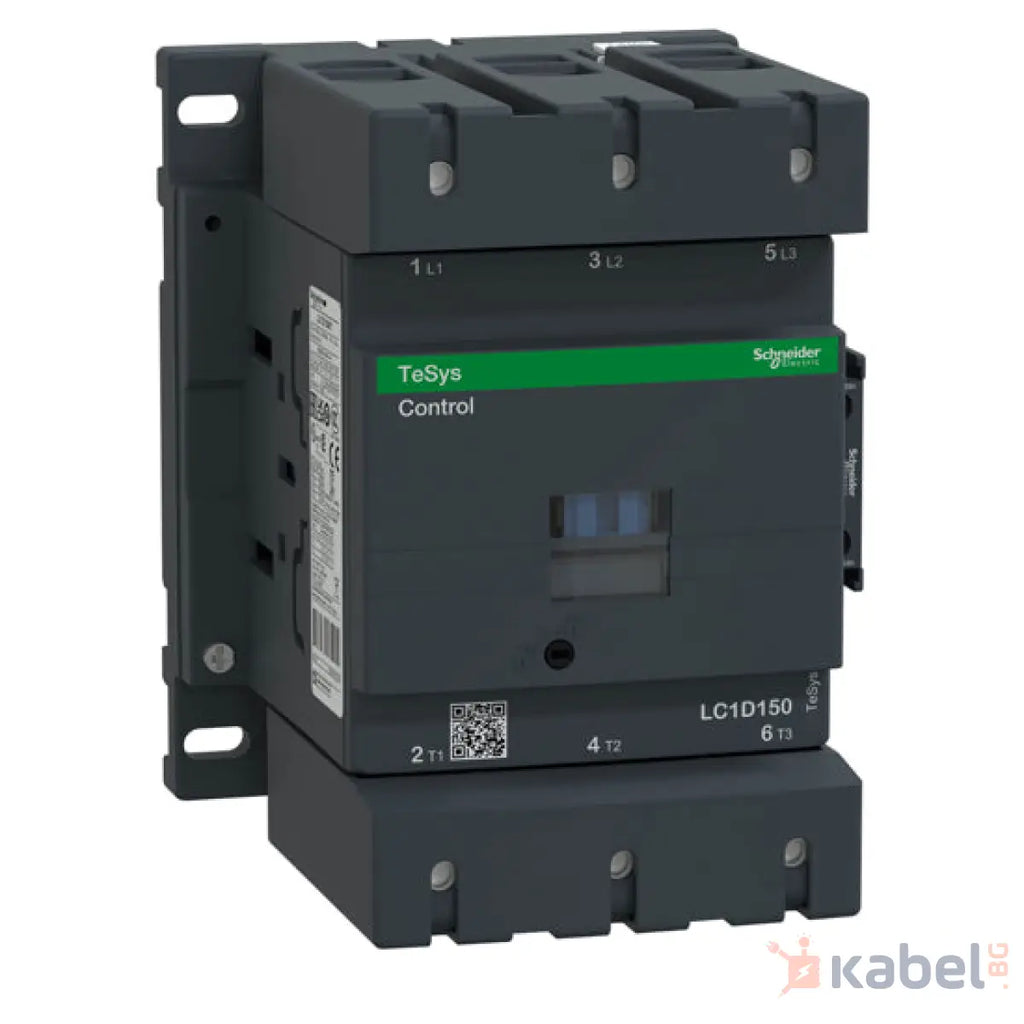 Контактор TeSys Deca, 3 полюса (3NO), за приложения за управление на двигатели до 150A/100V AC-3 (75kW@400V). Осигурява 220 V 50/60 Hz променливотокова бобина с превключвателен модул, 1NO+1NC вградени спомагателни контакти (NC огледален контакт), захранване с винтови връзки 2 входа, контролна връзка с винтови клеми. За работни скорости до 1200 цикъла/час и среди до 60°C, осигурява висока надеждност и издръжливост. Компактност (120мм ширина), монтаж на 2 DIN шини или винтов монтаж. Сертифициран по различни стандарти (IEC, UL, CSA, CCC, EAC, Marine), в съответствие с Green Premium (RoHS/REACh).