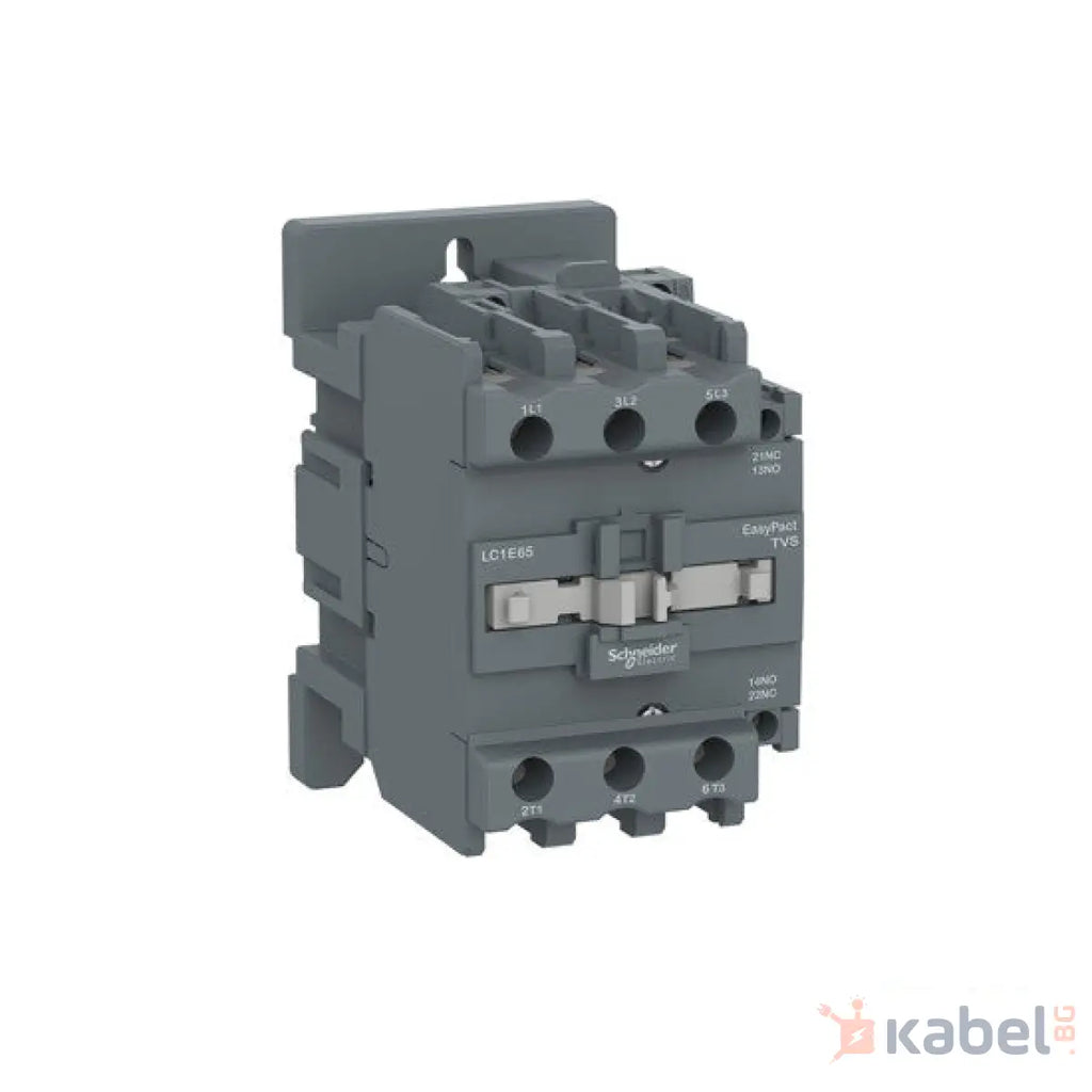 EasyPact TVS контактор 3 полюса за приложения с двигатели до 65A 37kW@440V. Осигурява 220V 50Hz AC бобина, без вградени спомагателни контакти, захранване и управляващи връзки чрез винтови клеми. ширина 75mm за стандартни работни скорости до 1200 цикъла на час. Осигурява стандартна надеждност и издръжливост с електрическа устойчивост 0,9 М цикъла AC-3 и 5 М цикъла на механична издръжливост. Може да покрие работна температура от -5°C до 55°C и да бъде монтиран на DIN шина, без намаляване до 3000m надморска височина. Сертифициран за множество стандарти (IEC, CCC, EAC) и съответстващ на Green Premium (RoHs/Reach).