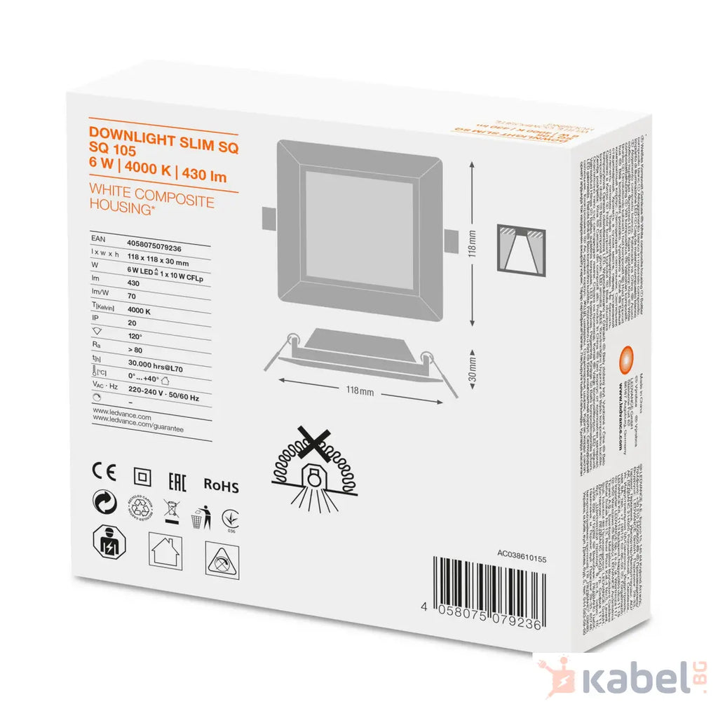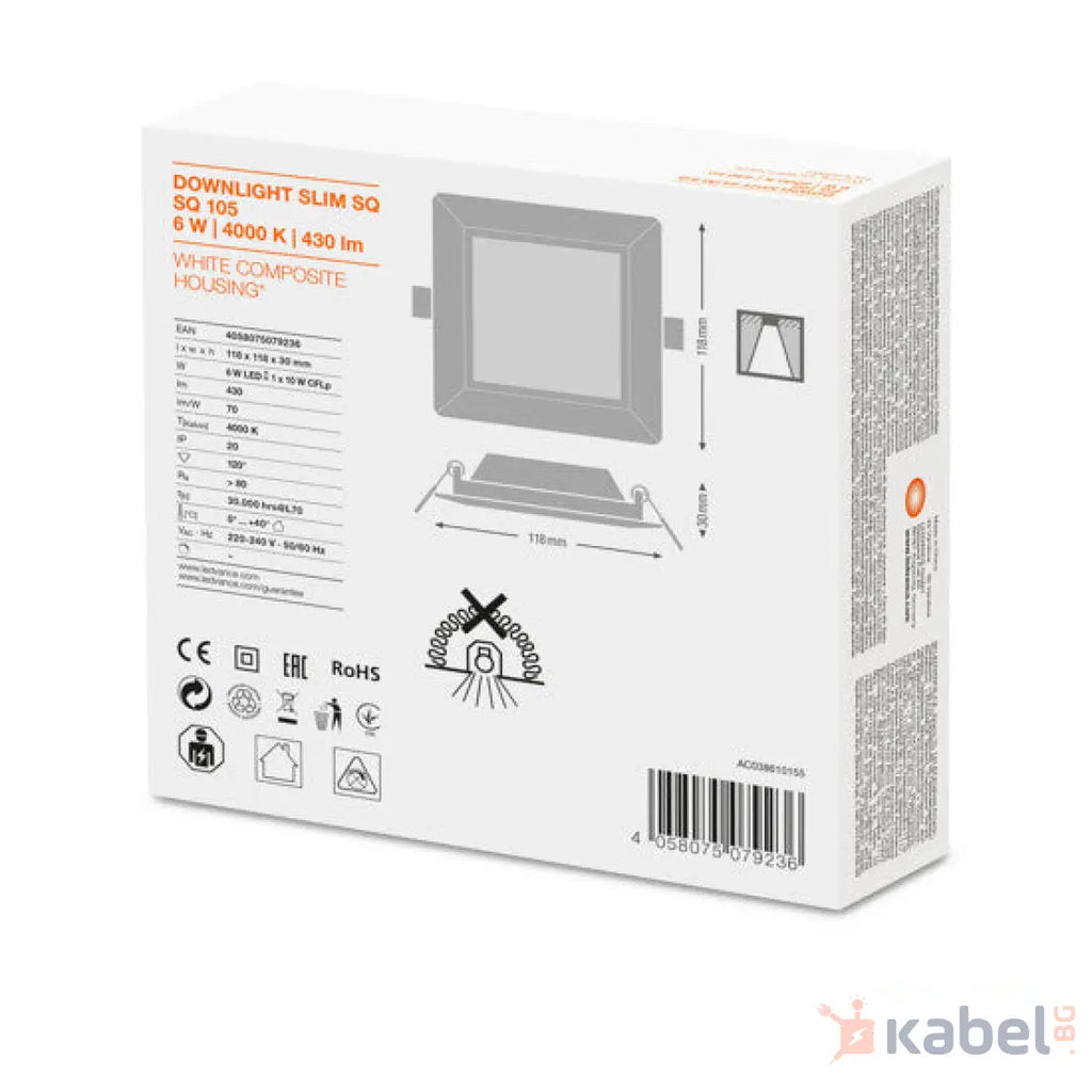 ЛУНА LED SLIM SQ105 6W 4000K,430lm,118X118mm,79236