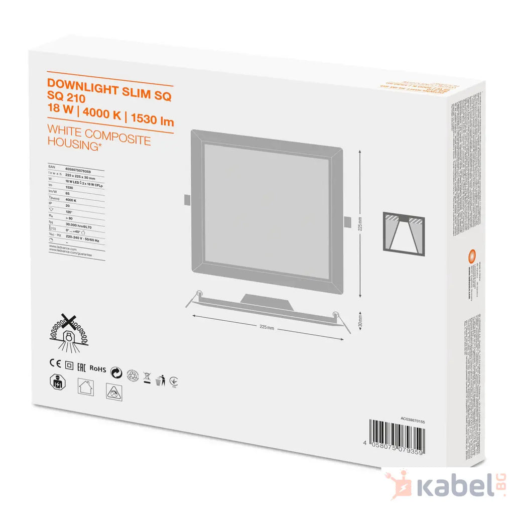 ЛУНА LED SLIM SQ210 18W 4000K 1530lm 225X225,79359