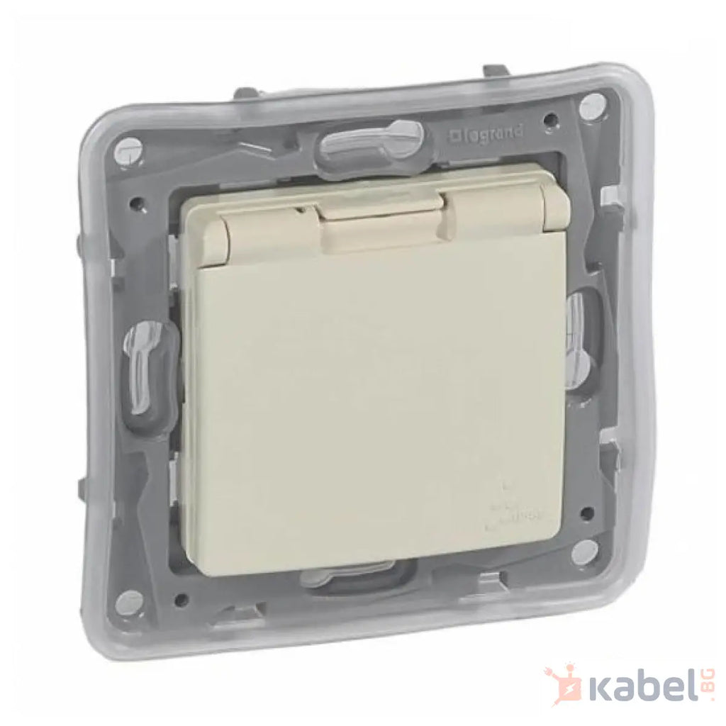 Механизъм на единичен контакт Крем Бежов с капак IP44 влагозащитен