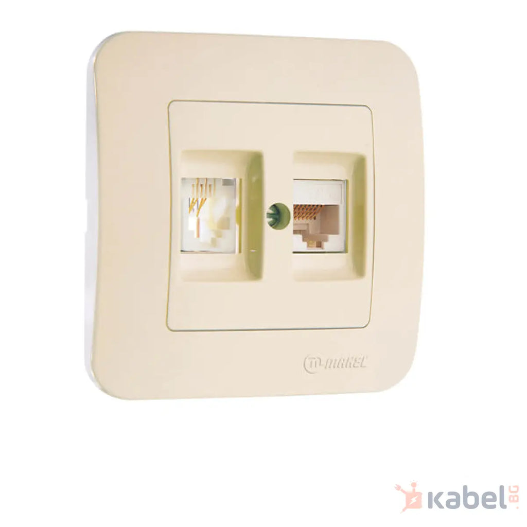 Розетка за интернет и телефон RJ45 + RJ11 Крем Бежов Скрит - вграден монтаж IP20 комбинирана розетка нет и телефон