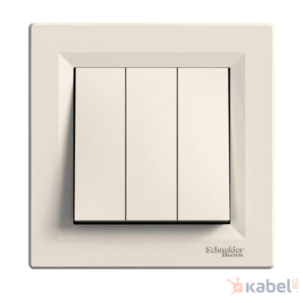 Троен ключ Асфора Шнайдер Крем Бежов 10А Скрит - вграден монтаж IP20 Asfora EPH2100123