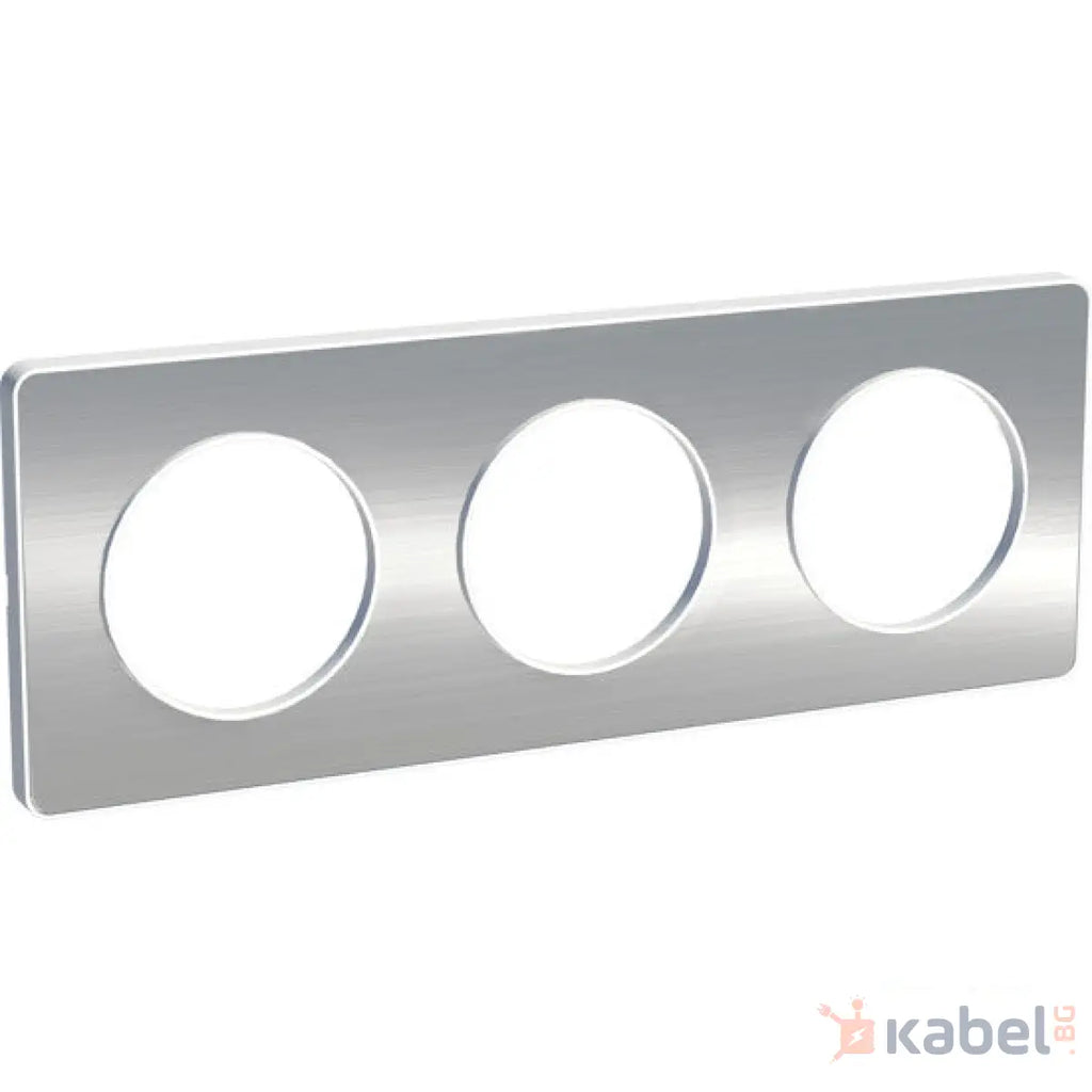 Тройна декоративна рамка Одaче Шнайдер Сив алуминий Бял IP21 D Odace за 3 контакт/, ключа S520806J