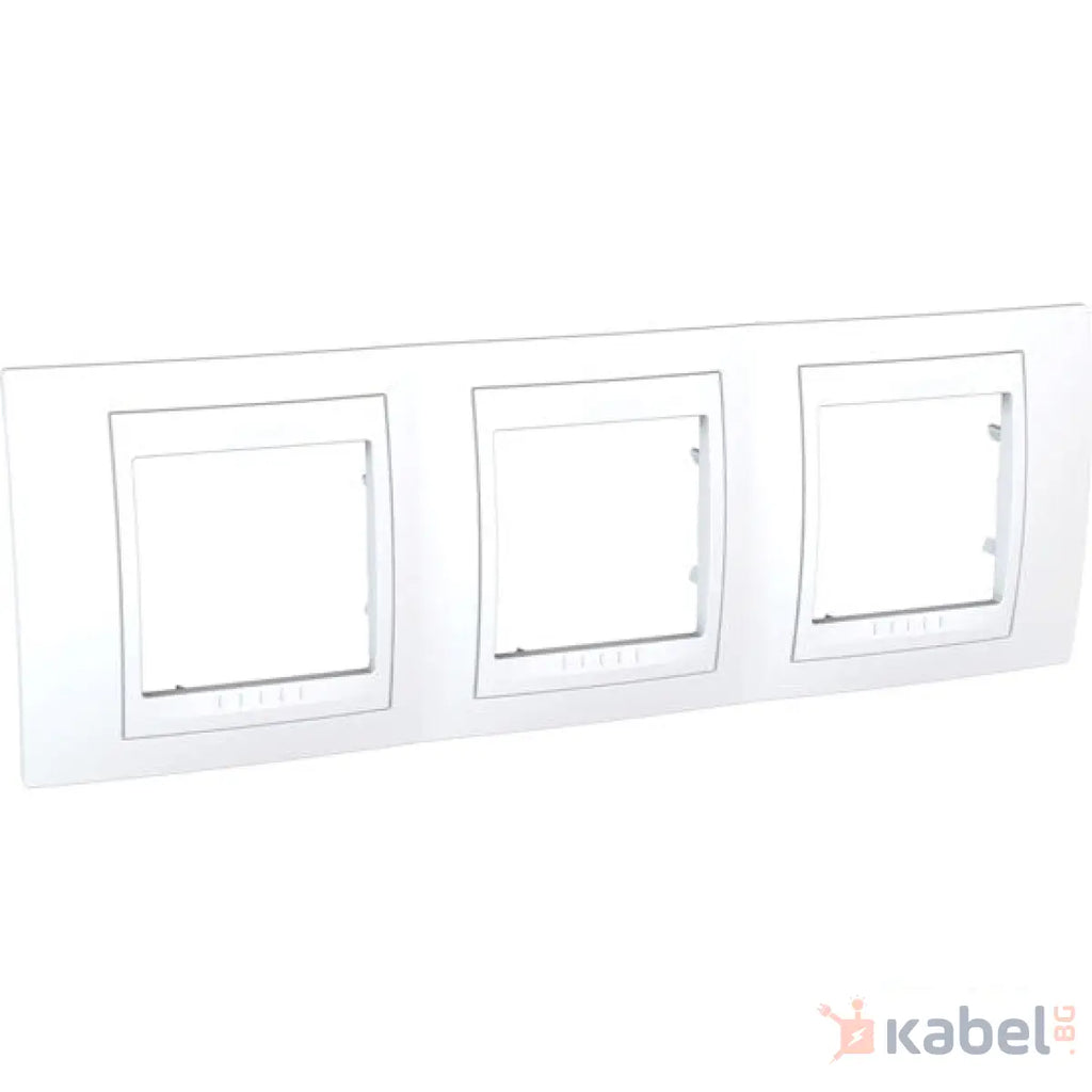 Тройна декоративна рамка Уникa Шнайдер Бял С щипки IP20 Unica за 3 контакт/, ключа MGU6.006.18