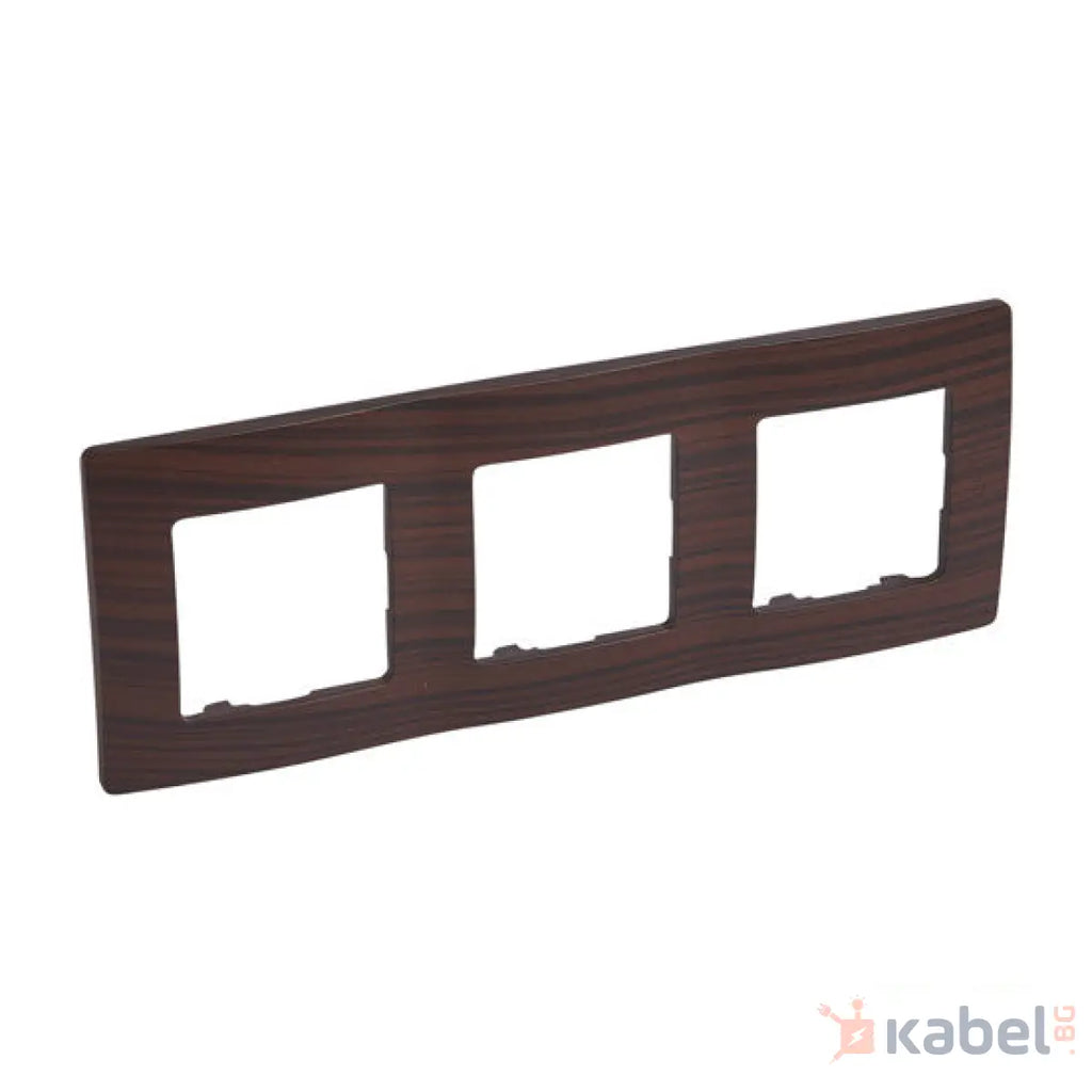 Тройна декоративна рамка Тъмно дърво Кафяв IP20 за 3 контакт/, ключа