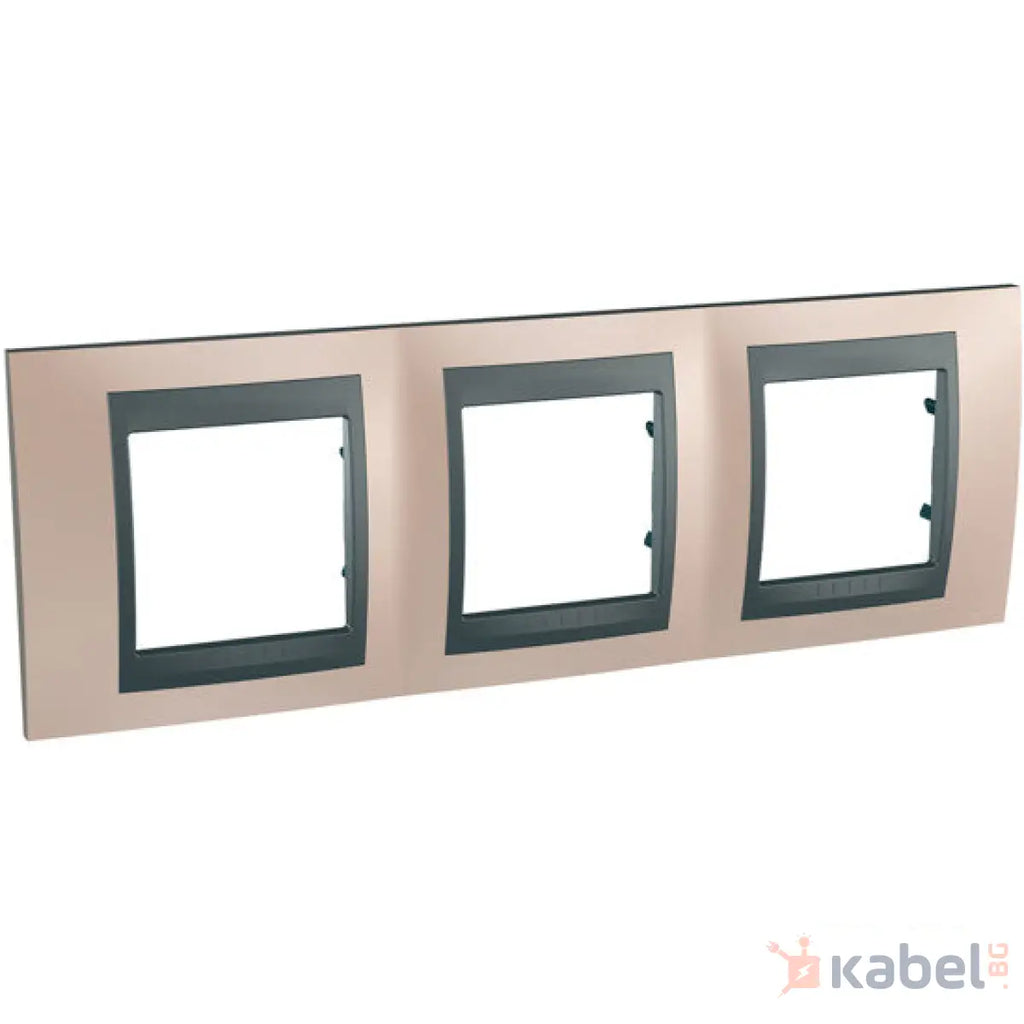 Тройна декоративна рамка Уникa Шнайдер Оникс/Графит Сив С щипки IP20 Unica за 3 контакт/, ключа MGU66.006.296