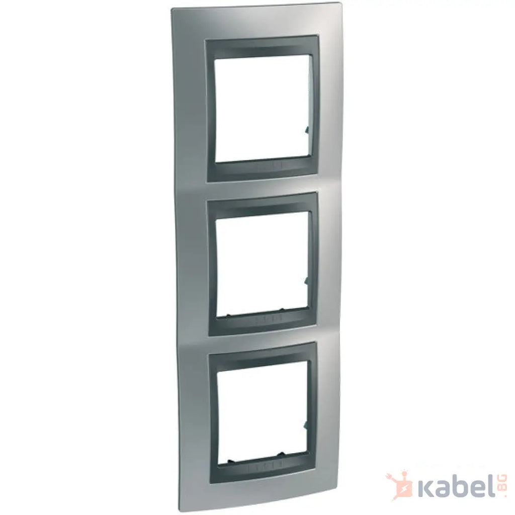 Тройна декоративна рамка Уникa Шнайдер Хром/графит Сив С щипки IP20 Unica за 3 контакт/, ключа MGU66.006.238