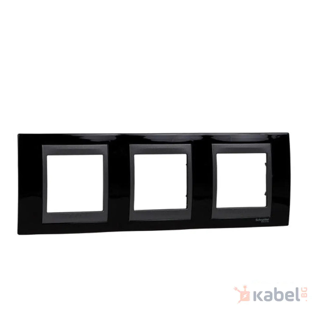 Тройна декоративна рамка Уникa Шнайдер Родий/Графит Сив С щипки IP20 Unica за 3 контакт/, ключа MGU66.006.293